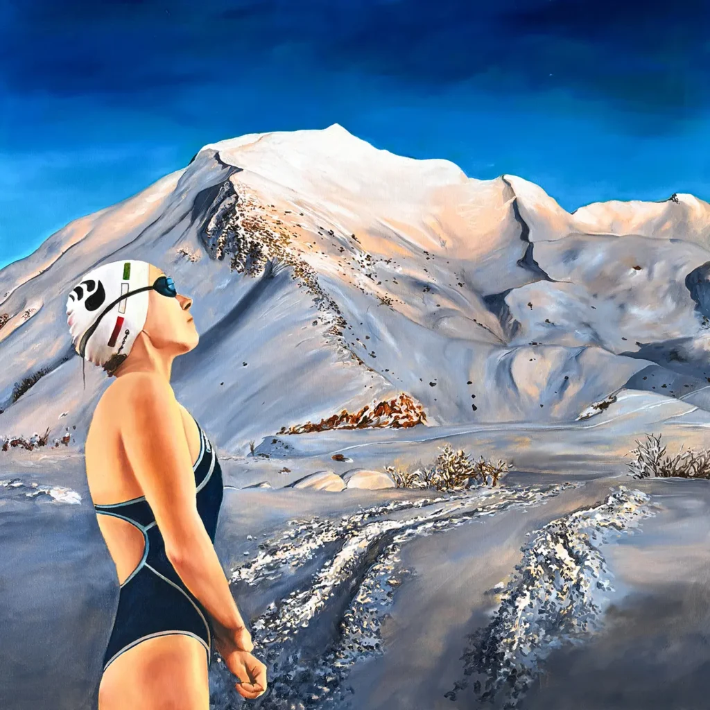 “Verso la superficie” – Sofia Fresia, olio su tela, 140×100 cm, anno 2025
