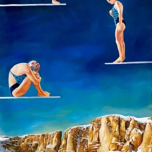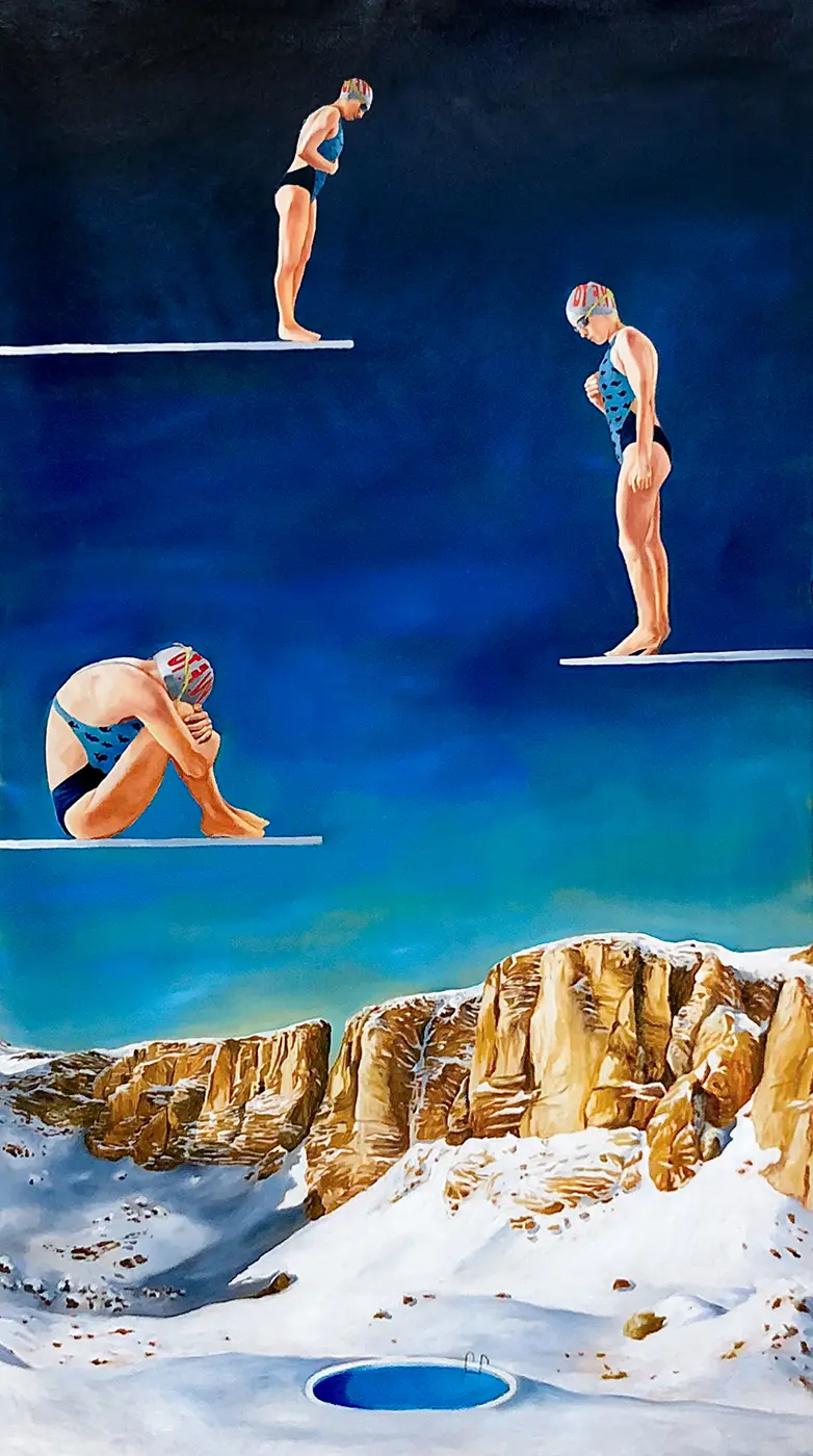“The Pool. Stodvarfjordur” – Sofia Fresia, olio su tela, 150×100 cm, anno 2024